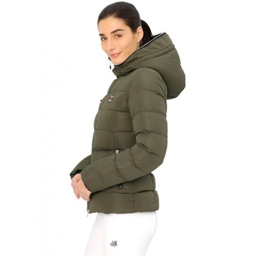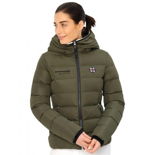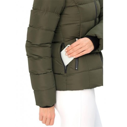 Стильная стеганная теплая куртка с капюшоном и высоким воротником