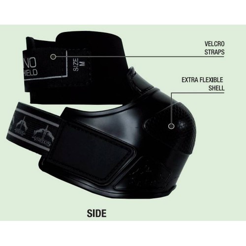 * Анатомическая форма: анатомически созданная защита благодаря эластичному материалу, который отлично прилипает к копыту лошади, позволяя таким образом избежать съезжания и поворочивания ботинка