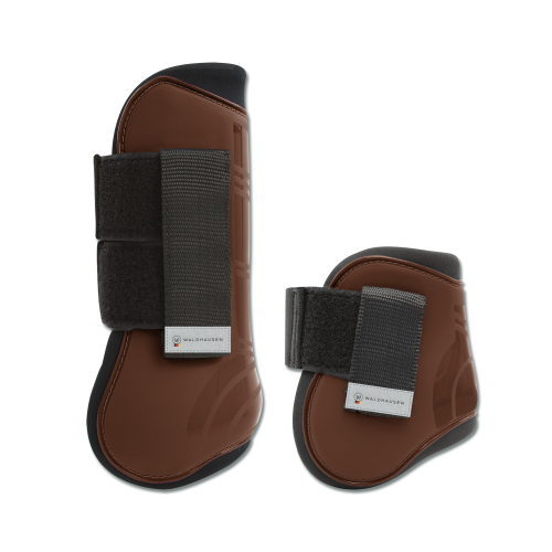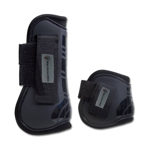 Жесткая ударопрочная оболочка с амортизирующим заполнением и мягким покрытием для комфорта и безопасности ног лошади