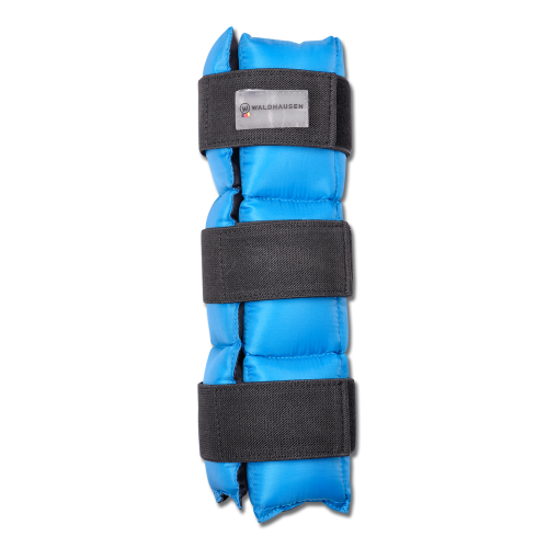 Охлаждающие ногавки состоят из нескольких отдельных камер и закрепляются с помощью застежек-липучек, что обеспечивает идеальную посадку по ноге лошади.