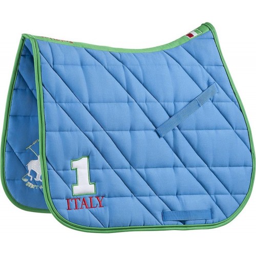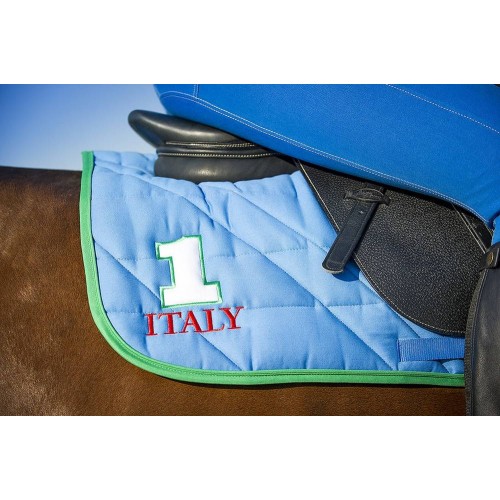 Вышивка игрока в поло с одной стороны и аппликация "№1" с названием страны - с другой.